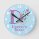 Design features Monogram & Name with Flowers either side in a water colour pastel style. Example name is Darcee. Child's bedroom clock, Kids bedroom clock. Change name as desired for anyone with a name beginning with D.