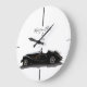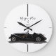 This clock design has a white background and no numbers. Only the 3 and the 9 are replaced by a single short, black line. The 12 and 6 by a double black line that would be continuous were it not for the image of the beautiful Morgan plus 4 cabriolet in the middle. This car, as written above it, was manufactured in the 1980's, even though it looks like it has come from the 1930's or there about. Beautiful car!!!