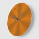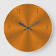 A clock design in deep, intense, golden orange colour. You can see beams coming from the centre point, going towards the edge, growing wider. This gives the design a metal like looks. The hour numbers have an emboss effect applied to them, which makes them look like they are carved on the clock.