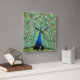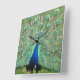 Peacock is all "eyes" on the time. Standing proud, the bird has bright green feathers accented with the royal blue centres and head and body feathers of blue. White numerals with drop shadow are at the edge.