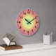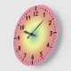 Rainbow colors in a circle on the clock face with green in the center, through yellow, orange, red, pink and purple going outwards. Numbers are in black Roman Numerals with the minutes marked with standard tic marks: largest at 12, 3, 6 and 9, medium at other hour markers, and smallest at remaining minute segments. ***Part of coordinated set - BKM1x.