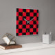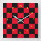 Chequerboard pattern with red and black squares. Yellow numerals.