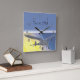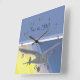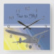 Model aeroplane photograph on simulated sunlight sky. Original plans: designed by Barney Snyder and John Muir. Yellow and blue graphic striations create the "sky" - Text reads "Time to fly!" with the numbers in "raised" metallic looking font.