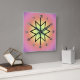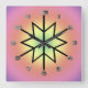 Star in black has the ends of its points on metallic looking numerals. Background is a diffused rainbow circle blending from green in center to purple at the edges.