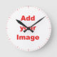 This template provide a simple clock face with numbers. Simply add your own image to the centre. You can add any image you like, but the ideal size is a horizontal image 2500 x 2500 pixels. Check out our other clocks to see other colours and designs, or to see some finished clocks made up.