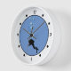 Scuba diver (in black) swimming in blue water. 3D bubbles (in blue and white) rise up. White ring with clock numbers represents a view through a porthole.