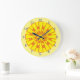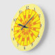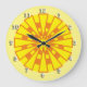 Rings in yellow and red grow concentrically smaller in thickness as the approach the centre. Overlaying the rings are triangles in yellow with orange outlines that mark hour segments. White numerals with drop shadows float above the outer pale yellow ring.