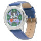 Great price point! Grandson loved his "own name" watch. Great for teaching time! Crisp clear picture! Sturdy leather band. Totally well made product.