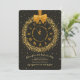 A handsome New Year's Eve invitation with a black background and a golden clock wreath hanging from a gold ribbon. (<a href='https://www.freepik.com/free-vector/new-year-party-2019-banner_3464436.htm'>Designed by Freepik</a>). <br/><br/>The card is easy to customise with your wording, font and font colour.<br/><br/>Not exactly what you're looking for? All our products can be custom designed to meet your needs at no extra charge.<br/><br/>Simply contact us at askcottonlamb@gmail.com.<br/><br/>Coordinating products available: Just ask us!