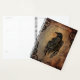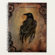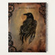 Raven on stone tile background. Clock gears all around border.