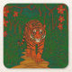 Cloisonne Art Tiger on the Jungle Path Square Paper Coaster