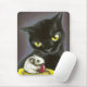 Gorgeous black cat and little mouse nibbling on a cranberry. From original oil pastel painting by Tanya Bond