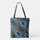 Close Up Colourful Peacock Feathers Gold Monogram Tote Bag