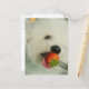 Close-up of a Bichon Frise eating a strawberry Postcard