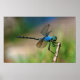 Close-Up Of A Blue Dragon Fly On A Branch Poster