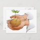 Close-up of a person's hands holding seedling postcard
