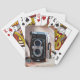Close-up of an antique camera playing cards