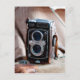 Close-up of an antique camera postcard