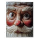 A highly detailed close-up of a Santa Claus figurine with wide, expressive eyes, rosy cheeks, and a bright red nose. The textured details of the beard and skin create a lifelike and whimsical representation, capturing a moment of wonder or surprise.
