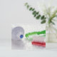 AssetID: 116361435 / {Antonio M. Rosario} / Close-up of toothpaste and toothbrushes covered