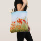 Close up poppies on field. Wild flowers in springt Tote Bag