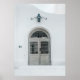 CLOSED GREY WOODEN DOOR BELOW BLACK LIGHT SCONCE POSTER