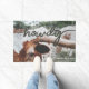 Get close-up and personal with this longhorn steer painted in an impressionist style. Rust orange, grey, white and green blur together to create this lovely portrait of our state cow. The word "howdy" greets your guests. Personalise with your family name or message at the bottom. Matching products available.