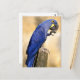 Closeup of Hyacinth macaw perched on wood post Postcard