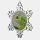 Closeup of veiled chameleon among plants postcard snowflake pewter christmas ornament