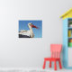 Closeup white stork (Ciconia ciconia) on blue sky background, in the Camargue is a natural region located south of Arles, France, between the Mediterranean Sea and the two arms of the Rhône delta