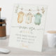 Clothesline Bodysuit Mom-osa Bar Baby Shower Pedestal Sign. Elevate your baby shower drink station with this delightful "Mom-osa Bar" sign. The design features a soft watercolor painting of three baby clothes in gender neutral pastel colors, strung up playfully. It clearly guides guests on how to mix the perfect celebratory drink: "Pour Some Bubbly, Add Some Juice, Top With Fruit." Or customize with your own text. The charming "Cheers!" adds a final festive touch. This sign is a wonderful addition to any baby shower decor, creating a focal point for your mimosa bar and capturing the joy of the occasion.
