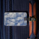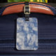 A Luggage Tag with a Picture of Clouds and Sky on the Front and Blue Colour/Blank on Back.
