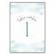 Cloud 9 Blue and White Bridal Shower 1 Table Number