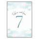 Cloud 9 Blue and White Bridal Shower 7 Table Number