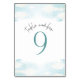 Cloud 9 Blue and White Bridal Shower 9 Table Number