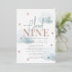 This elegant and modern "we're on cloud nine/9" boy baby shower by mail foil invitation features a white background with fluffy blue clouds in watercolor. The reverse side features a white background with geometric patterns in light blue. Personalise for your needs. You can find more matching products at my store.