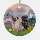 Cloud Angel - Two Girl Pugs Ceramic Tree Decoration