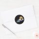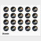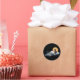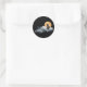 A shy tortoiseshell cat on a fluffy cloud floats by a big full moon on these elegant stickers.