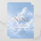 Cloud nine bridal shower invitation. Modern elegant cloud 9 theme bridal shower design featuring dreamy blue sky cloud background.
