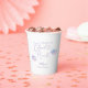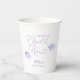 Dreamy and romantic bridal shower paper cup featuring illustration of pink, blue, and purple clouds with a text that says "the bride is on cloud nine."