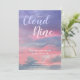 These gender neutral baby shower Invitations feature a We're on Cloud Nine design theme. Purple, pink, blue ethereal watercolor sky with color typography. Image copyright Marg Seregelyi Photography.
