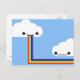 A cute cloud puking a rainbow on a postcard. A funny image to send while on vacation or to kids.