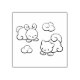A whimsical illustration of clouds shaped like a bunny and a cat.