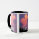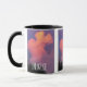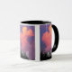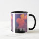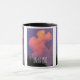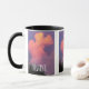 This inspirational Mug by ZoeSPEAK features an original photograph of clouds in the eastern sky reflecting the sunset in the west, over the Gulf of Mexico. The tropical evening sky is bathed in a warm pink glow above the dark silhouette of palm trees. Filling most of the photo is a cloud in a very interesting shape, looking almost like a fluffy toy animal or...use your imagination...the soft pink colours of the sheer clouds near the bottom of the photo intensify as the sun hits the thick, billowing shape of the main cloud rising into the sky. The puffy shape at the top of the cloud has yellow highlights. Near the bottom of the mug is the word IMAGINE, in tall thin white capital letters. The design is repeated around the mug.