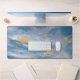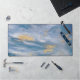 Clouds Abstract Art Blue Gold Artsy Desk Pad