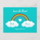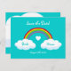 Announce your wedding with this customisable Save the Date card with cute and colourful illustration of clouds and rainbow.