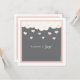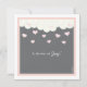 Sweet design of puffy white clouds raining a shower of love upon the Mum-to-be. Hearts in soft pink and peach on a background of grey, this invitation welcomes your guests to shower her with joy in colours suitable for a girl. Also available in blue.