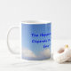 "The Happiness of Your Life Depends on the Quality of Your Thoughts" printed on a photo of the sky created into a coffee mug.