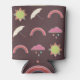 Vintage repeat seamless pattern with clouds, rain, rainbow, sun and umbrellas.