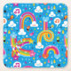clouds rainbows rain drops hearts pattern square paper coaster